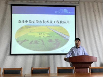 10月15日上午,上海化工研究有限公司教授级高工李泓来我院作题为《电脱盐技术在油田、炼油厂应用》的学术报告。
