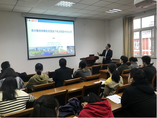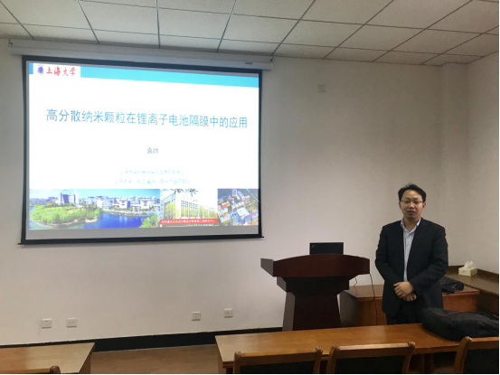 11月12日下午,在梁林校区1号楼506学术报告厅,上海大学嘉兴先进产业研究院常务副院长袁帅教授来我院作题为《高分散纳米颗粒在锂离子电池隔膜中的应用》的学术报告。