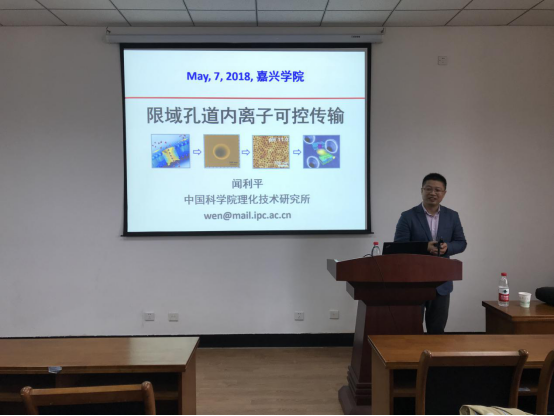 5月7日下午,在1号楼506学术报告厅,中国科学院理化技术研究所闻利平教授来我院作题为《限域孔道内离子可控传输》学术报告。