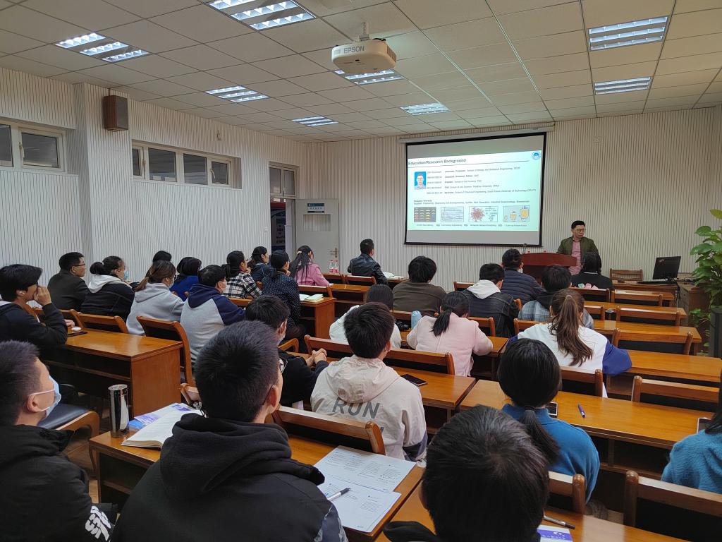 11月12日下午,应性爱视频 邀请,华南理工大学叶健文博士一行来访,并作题为《细胞工厂的静/动态调控优化》的学术报告,学院副院长张瑾主持讲座,全院师生30余人到场聆听。