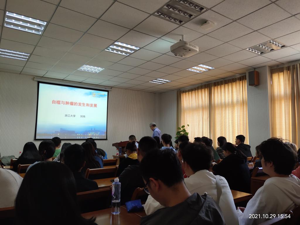10月29日下午,应性爱视频 邀请,浙江大学刘伟教授一行来访,并作题为“自噬与肿瘤的发生和发展”的学术报告,学院副院长张瑾主持讲座,全院师生40余人到场聆听。