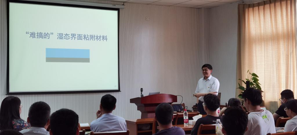 邀请,中国科学院理化技术研究所王树涛副所长来我院作题为“仿生粘附界面材料”的学术报告,学院院长曹雪波主持讲座,全院师生40余人到场聆听。