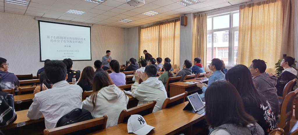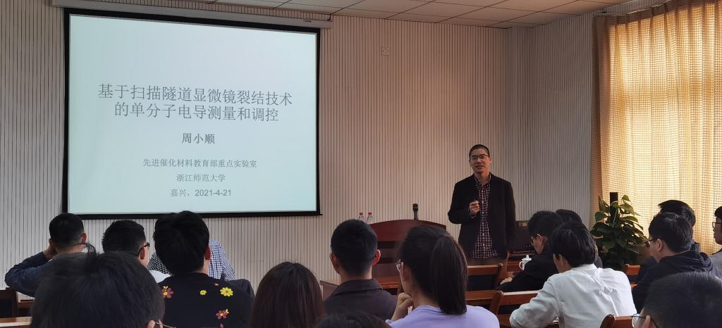 4月21日上午,在梁林校区1号楼506学术报告厅,浙江师范大学周小顺研究员来我院作题为《基于扫描隧道显微镜裂结技术的单分子电导测量和调控》的学术报告。