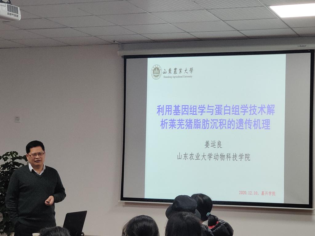 2020年12月10日下午,在梁林校区1号楼516学术报告厅,山东农业大学姜运良教授来我院作题为《利用基因/蛋白组学技术解析猪脂肪沉积的遗传机理》的学术报告。
