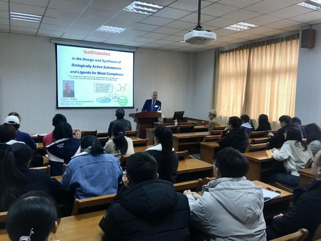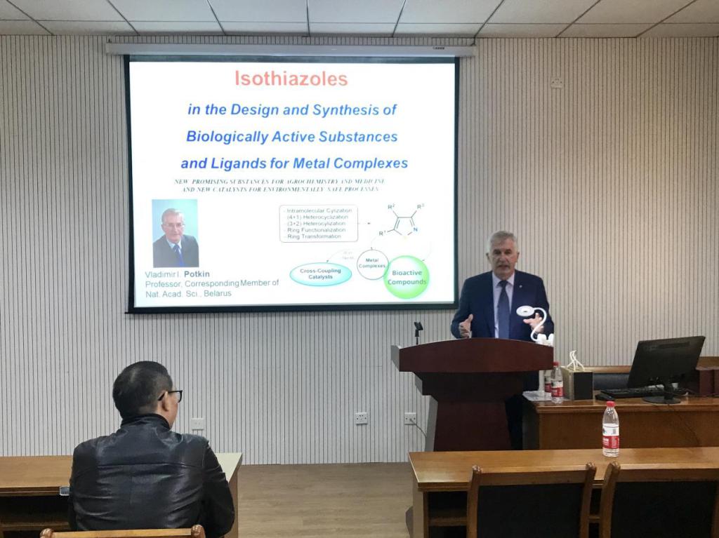11月29日(周五)下午,在梁林校区1号楼506学术报告厅,白俄罗斯国家科学院Vladimir Potkin院士来我院作题为In the Design and Synthesis of Biologically Active Substances and Ligands for Metal Complexes的学术报告。