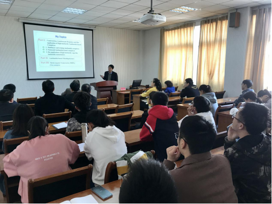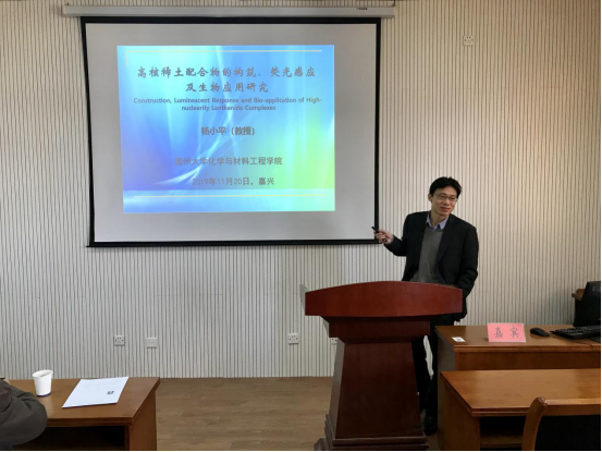 11月20日下午,在梁林校区1号楼506学术报告厅,温州大学杨小平教授来我院作题为《高核稀土配合物的构筑、荧光感应及生物探针研究》的学术报告。