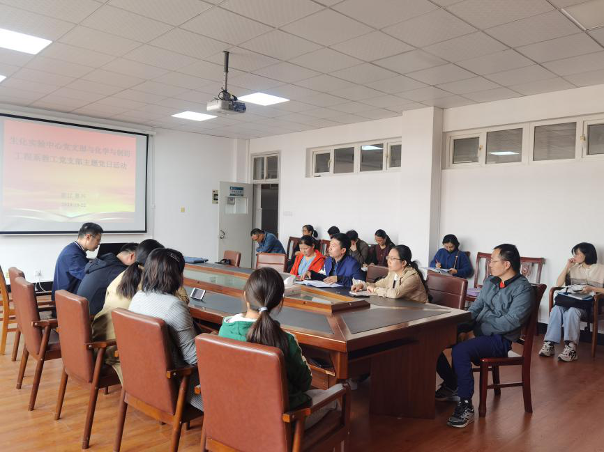 为了加强党建交流互鉴,共同提高党组织活力,化药系党支部和实验中心党支部联合组织开展了主题党日活动。2020年10月22日下午,化药系党支部和实验中心党支部的全体党员在梁林校区5号楼516会议室召开了“十四五”规划---党员教师的责任与担当”主题研讨会。会议由实验中心党支部书记沈兵同志和化药系党支部书记王红梅同志共同主持。