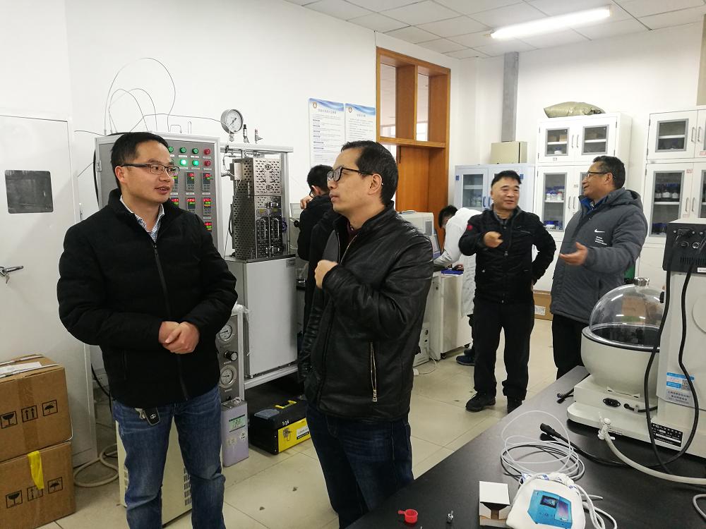 检查组一行先后对实验中心、分析测试中心以及科研实验室进行全面安全检查。检查中发现个别实验室存在钢瓶未按要求固定,实验药品、试剂存放不规范等安全隐患。