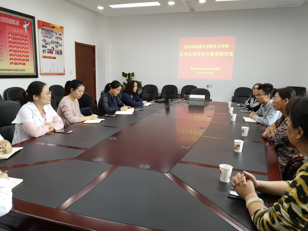 为深入学习党中央不忘初心、牢记使命主题教育精神,发扬党员“办实事、抓落实”的工作作风,1024日下午,应用化学系党支部走访应用化学专业实习基地——嘉兴市食品药品检验检测院,调研应用化学专业本科生实习情况,征求合作单位对性爱视频 实习工作的意见和建议。