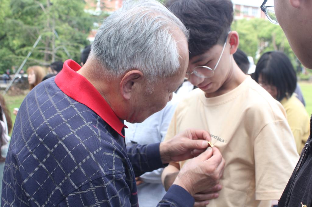 活动结束之际,爷爷奶奶们为同学们佩戴上团徽,一起重温入团宣誓仪式。在庄严的氛围里,同学们都明白了,新时代中国青年要自觉树立和践行社会主义核心价值观,以实现中华民族的伟大复兴为己任,牢记五四精神,砥砺前行