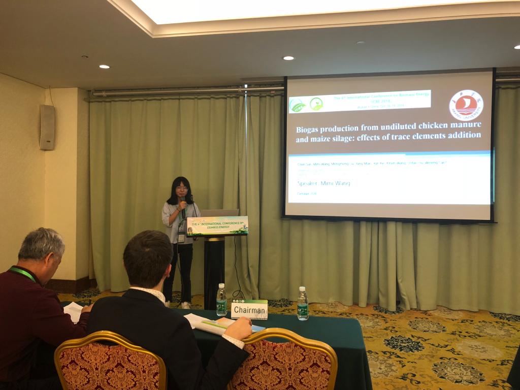 我院环境工程专业三年级学生汪密密在指导教师孙辰博士和曹卫星博士的带领下,于10月17日下午在第六届生物质能源国际会议“生物质燃气”分会场做了题为“Biogas production from undiluted chicken manure and maize silage: effects of trace elements addition”的大会口头报告,并现场回答专家提问。其精彩的报告和回答赢得与会专家的认同和热烈掌声。会后,孙辰、曹卫星和汪密密一行三人与各国学者进行了深入的学术交流,探讨并宣传了嘉兴学院近年来在生物质厌氧消化领域的研究进展,取得了国内外同行的认可,汪密密同学与各国的青年学者结交了广泛的学术友谊。