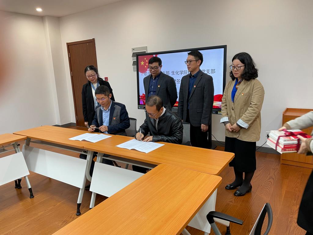 两个党支部的支部书记签署了党支部结对共建协议,机关第九党支部向性爱视频 研究生党支部赠送了党史学习资料。