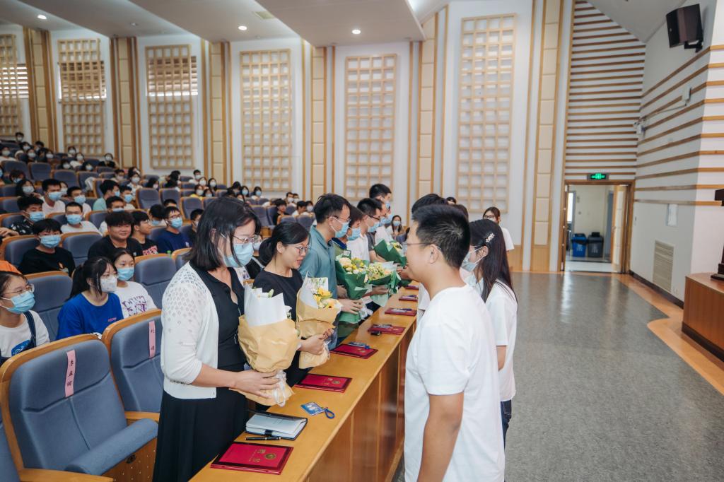 典礼最后,学院还安排新生班级代表向新生班主任献花环节,提前祝老师们教师节快乐。