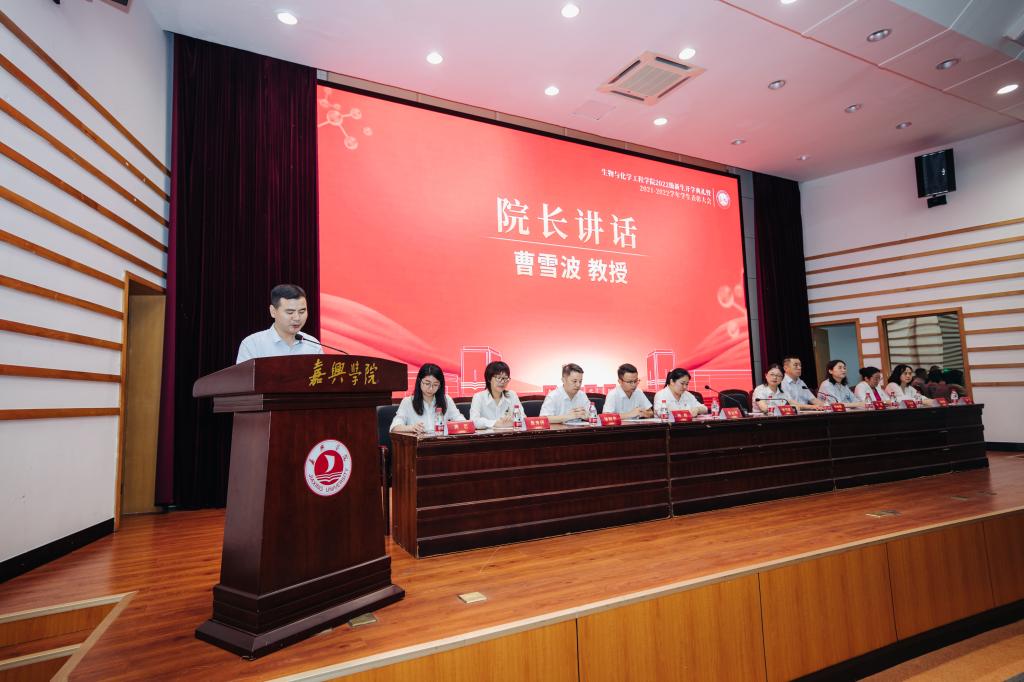 院长曹雪波教授代表全院师生员工向加入生化大家庭的2022级全体同学表示热烈欢迎,向在线观看的新生家长表示诚挚的感谢,并以“追寻科学之光”为题,为新生带来“开学第一课”。他介绍了学院学科专业、师资力量、科研条件、人才培养成效、发展目标等情况,为新生勾勒出学院发展的美好蓝图,激发了新同学爱院荣院的自豪感和自信心。