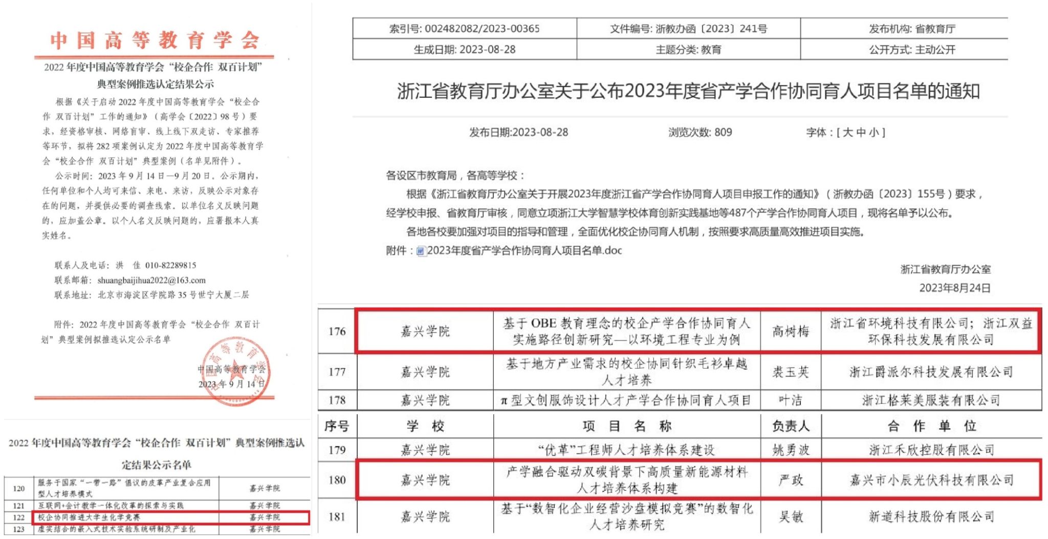 近日,中国高等教育学会公布的2022年度“校企合作 双百计划”典型案例名单,我院推荐的“校企协同推进大学生化学竞赛”案例成功入选(学校共4个案例入选)。同时,省教育厅公布2023年度省产学合作协同育人项目,我院推荐的《基于OBE教育理念的校企产学合作协同育人实施路径创新研究—以环境工程专业为例》(项目负责人:高树梅)和《产学融合驱动双碳背景下高质量新能源材料人才培养体系构建》(项目负责人:严政)2个项目成功获批(学校共6个项目获批),校企协同育人取得新成效。