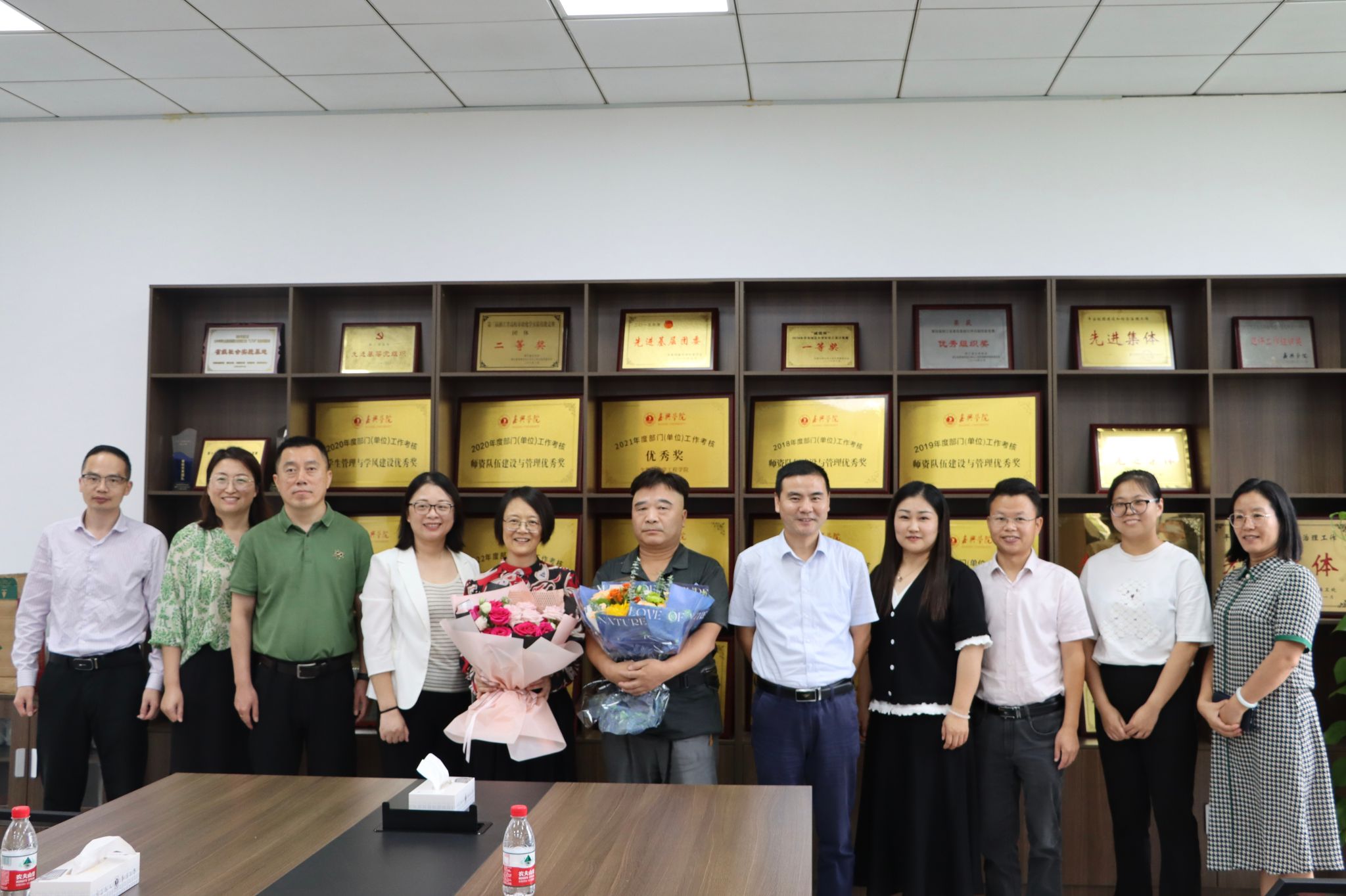 荣退仪式上,学院院长曹雪波代表学院全体师生对退休教师们为学校、学院建设发展作出的贡献致以最衷心地感谢,真诚地希望老师们“离岗不离校”,继续为教育事业发挥余热,为学院学科专业建设、人才培养建言献策。党委书记杨丽娜为退休教师送上了鲜花和退休纪念品。