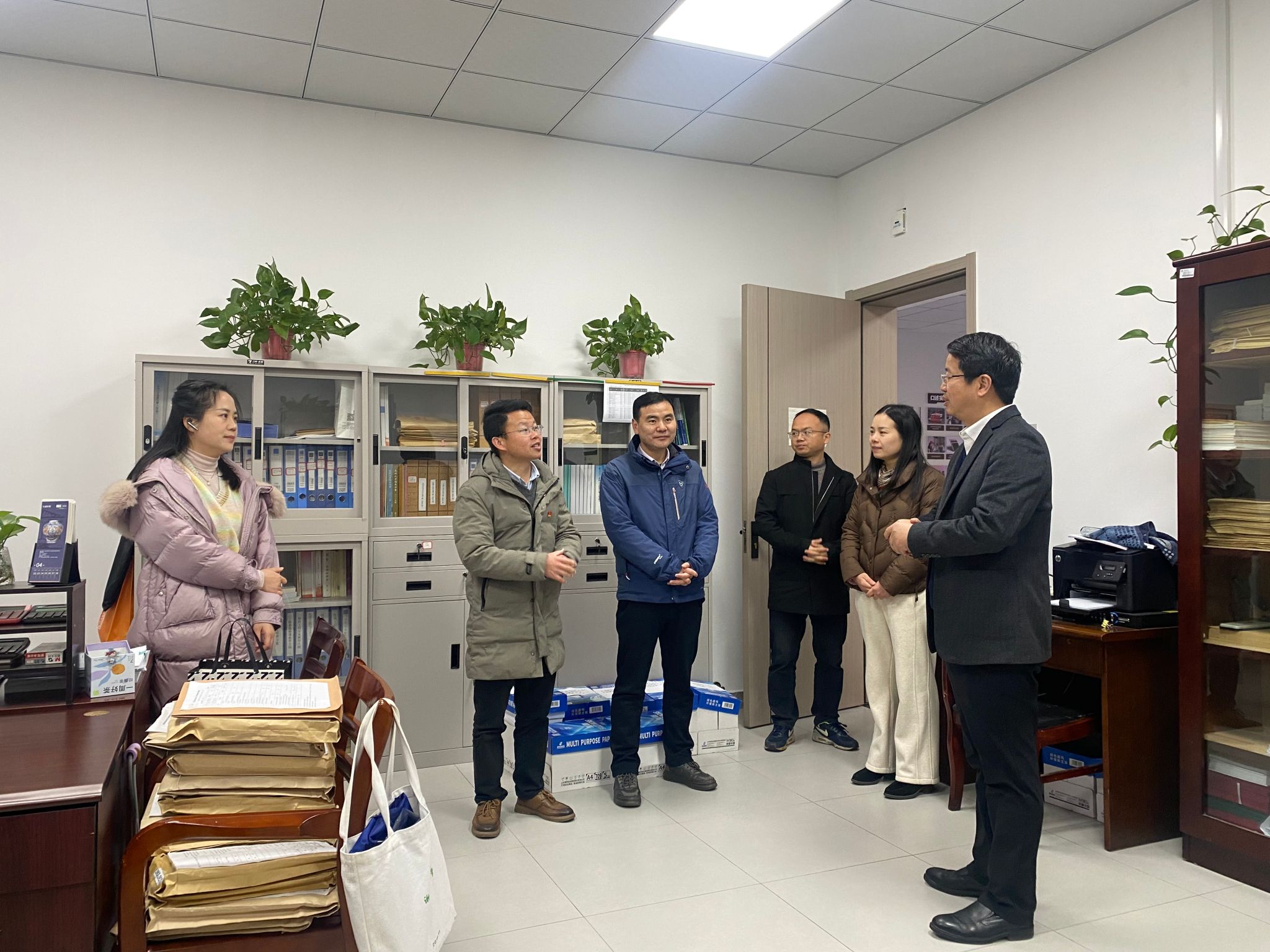 上午,於建明走访了学院办公室、教学办、学工办等,对节后返岗教职工致以新春的祝福和新学期的问候,并对学院春季学期开学各项准备工作进行检查指导,叮嘱学院要做好安全隐患排查工作,保障师生返校后各项工作顺利开展。