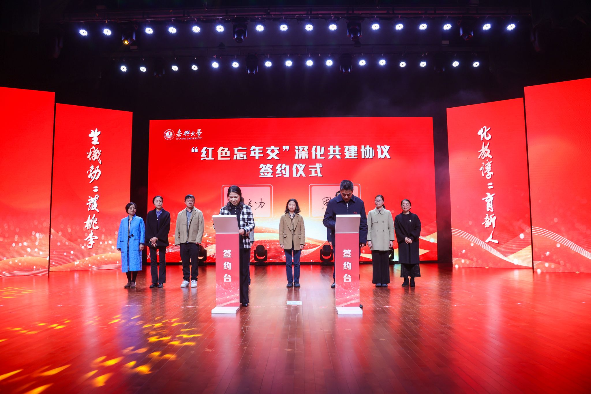 “红色忘年交”活动三十周年纪念大会暨2024年新老结对仪式在学校初心剧场举行。校党委副书记陈立力出席大会并致辞。嘉兴市新四军历史研究会顾问、原嘉兴学院党委副书记唐瑞娥,嘉兴市新四军历史研究会会长周军,副会长张红宇、阮茂荣,“红色忘年交”活动发起人王继述的女儿王佳,活动早期组织者吴建一老师和活动早期参与师生代表等受邀出席大会。