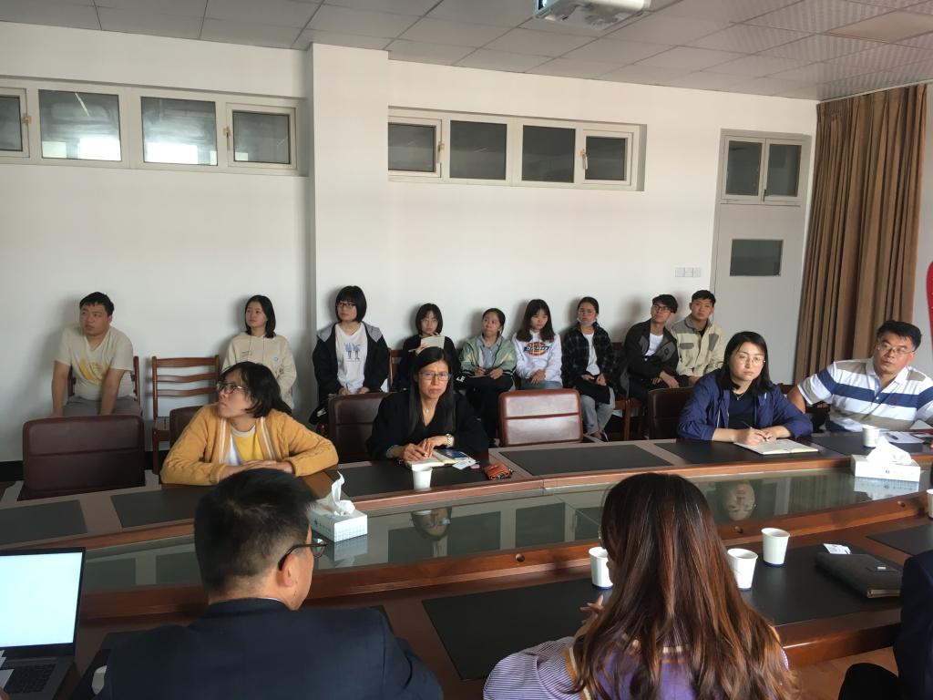 2019102510:30,浙江沙星科技有限公司董事长王文斌、人力资源部经理蔡立斌、陈征军、方璐媚(我院19届毕业生)一行四人赴性爱视频 与师生代表开展对接活动。性爱视频 副院长曹红、环生系系主任赵国华、应化系系副主任吕春欣、化药系系务委员沈红霞、化工专业建设小组成员胡万鹏、学工办王淑芳、教务办王亦彤以及部分毕业生代表参加了对接活动。