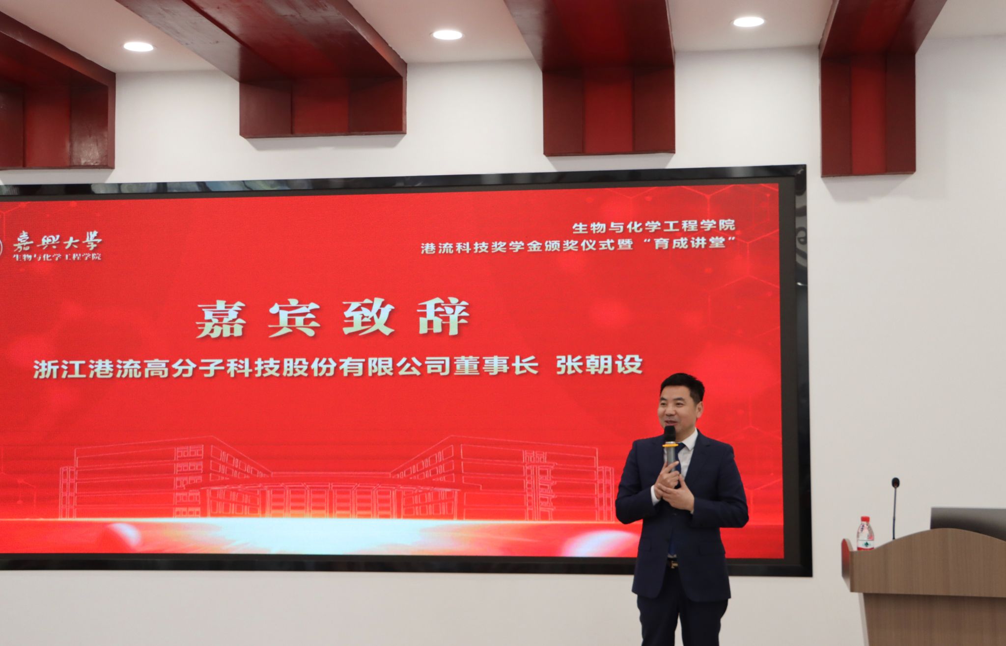 港流科技奖学金由我院97级高分子化工专业校友、浙江港流高分子科技股份有限公司董事长张朝设捐资设立,旨在激励学院德智体美劳全面发展、品学兼优的本科生和研究生,勉励全体学生从中汲取奋进力量,坚定人生航向。未来,学院将继续加强校企合作,强化奖学金育人成效,引领广大学子潜心钻研、自强不息,在时代发展进步的潮流中绽放光彩,在实现民族复兴的赛道上奋勇争先,不断书写为中国式现代化挺膺担当的青春篇章。
