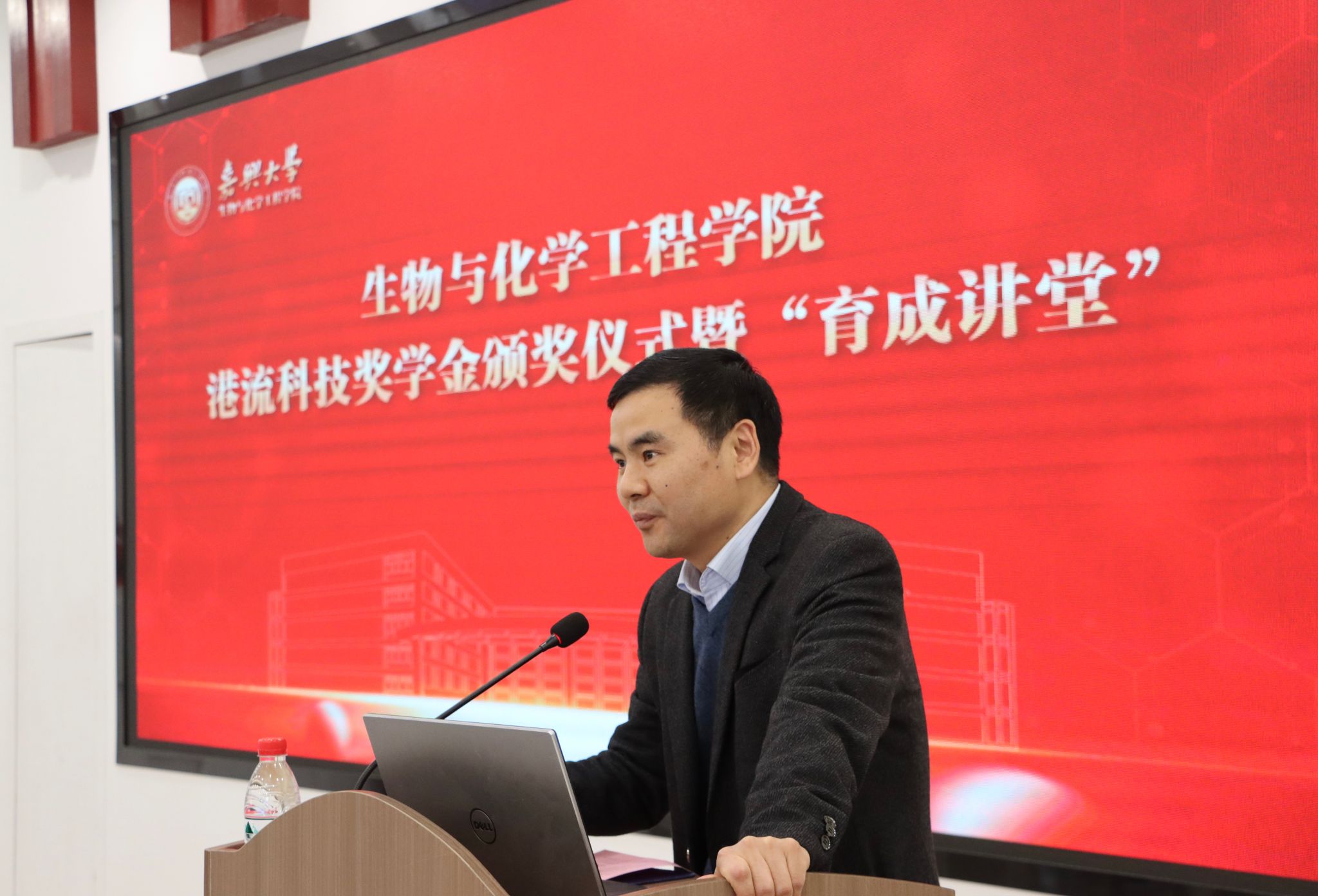 颁奖仪式上,院长曹雪波代表学院向校友及校友企业对学院发展的支持表达感谢。他表示,在广大校友的关心支持下,学院围绕高水平建设,在学科建设、科研创新、人才培养等方面取得了丰硕成果。他强调,该奖学金“不仅是物质激励,更是一份生化精神的传承”,希望获得奖励的同学们感恩奋进,一如既往保持严谨的治学态度和创新精神,将荣誉发扬光大,带领全体生化学子以校友为榜样,勇攀科技高峰,担负时代使命,将个人理想融入国家需求,将所学知识投入行业发展,用创新突破回应时代课题,做开拓创新的实践者。
